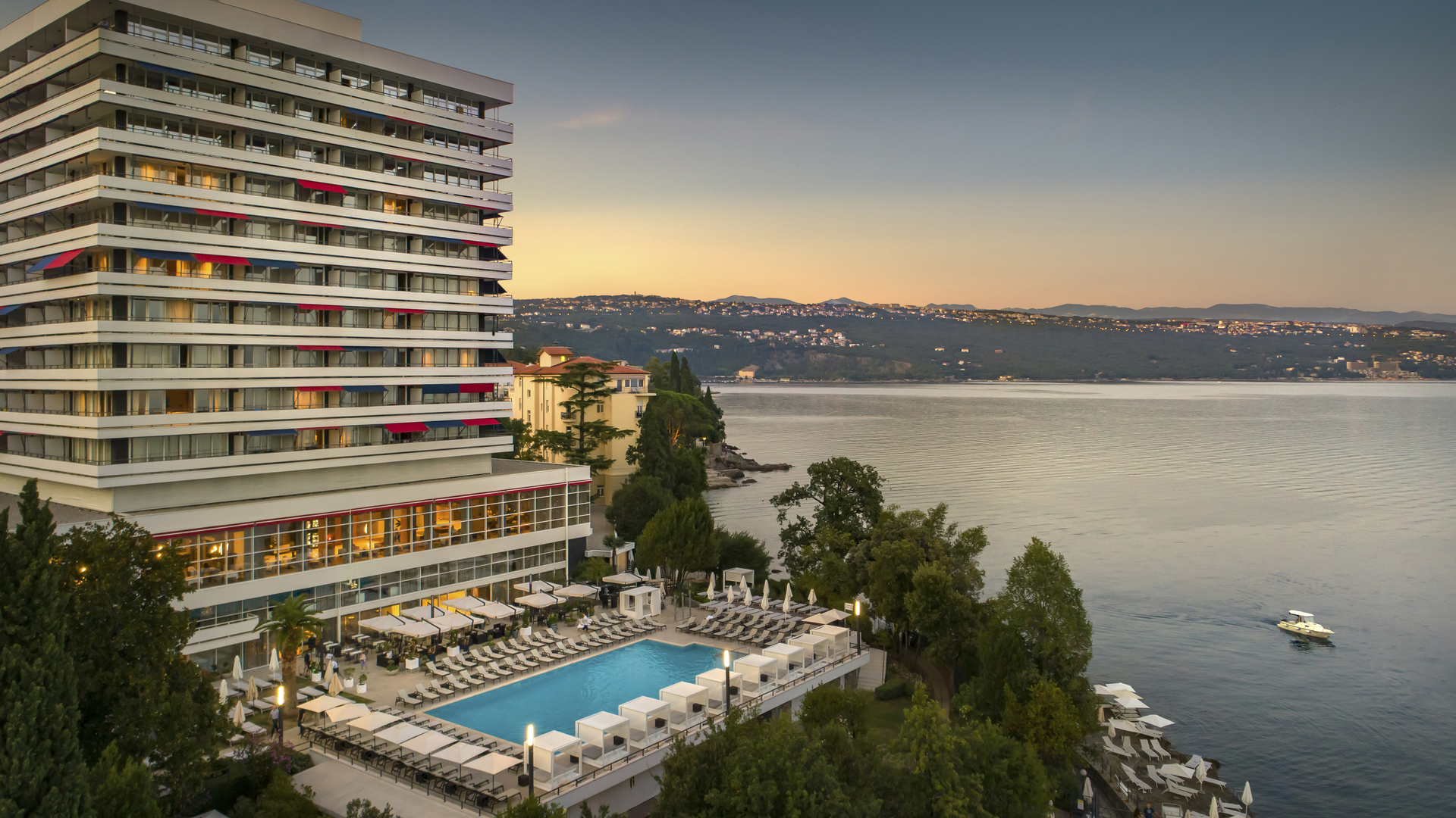 Das Hotel liegt direkt oberhalb der Küstenpromenade. Das Opatija Riviera liegt an der Kvarner-Bucht am Ostufer der Halbinsel Istrien, wo das Meer am weitesten ins Festland vordringt. Das Hotel ist ausgestattet mit Rezeption, Restaurant, Bar, Terrasse, Innen- und Außenpools mit Liegestühlen und Sonnenschirmen (nach Verfügbarkeit), Spa & Wellnesscenter, Fitnesscenter, Kinderspielplatz.Mehr Details zum Angebot anzeigen