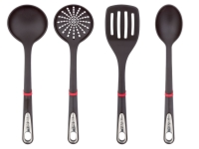 Küchenhelfer; Tefal Küchenhelfer-Set »Ingenio K206S4«, 4-teiligEchte Helfer fürs Kochen. Ein komplettes Set der am häufigsten gebrauchten Küchenutensilien für mehr Leichtigkeit beim Kochen. Vielseitig in der Anwendung, hochwertig in der Verarbeitung und elegant im Design - ein System, das überzeugt! Die perfekte Grundausstattung für jeden Haushalt in einem kompakten Set, das Eindruck macht. Ideal auch als Geschenk für Haushaltsgründer, Hobbyköche und Kochprofis. Eigenschaften 4-teilig Set bestehend aus: Suppenkelle, Gemüselöffel, Löffel, Bratwender Sicher: Silikonring verhindert das Abrutschen in den Topf und schützt Material, Kochgeschirr und Anwender gleichermaßen Hygienisch: Leicht zu reinigen, da die Küchenhelfer spülmaschinenfest sind Hitzebeständig: bis zu 250°C Resistent gegen Verfärbungen Griff mit Einsatz aus Edelstahl Mit praktischer Öse zum AufhängenMaterialKunststoffMaßeca. L 17,2 x B 8,1 x H 36 cmGewichtca. 267 g ; Set: Suppenkelle, Gemüselöffel, Löffel, BratwenderTemperaturbeständig: bis zu 250°CMerkmal: mit praktischer Öse zum Aufhängen; EAN: 3168430240223